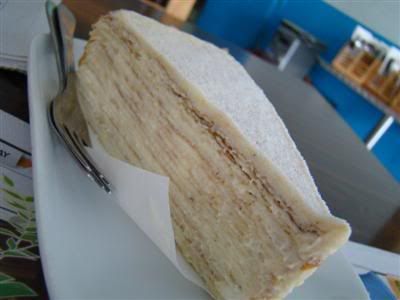I actually kept a newspaper cutting of a mille crepe a long, long time ago and I pestered my mum to look for the place.