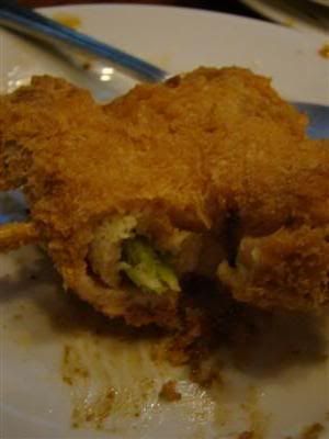 There was ham and a piece of leek (I think?) but overall it was good fried chicken!