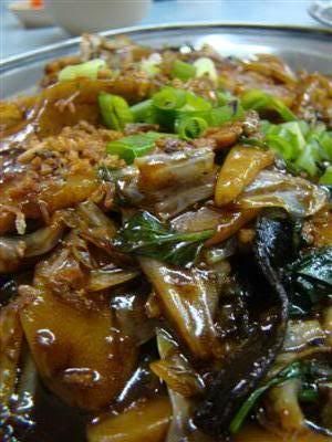I hated this dish as a kid. The rice sticks are thick and it has a strong floor taste. Eating it as an adult, it reminded me of how I would pick at everything else except the rice sticks. It's prepared similarly as the sweet potato flour dish. People who like Pan Mee would love this dish.
