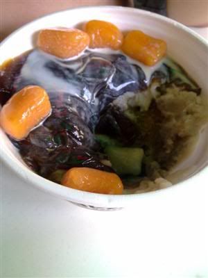 Before I could finish lunch, a phone call came in from Ezel cause I checked in on foursquare (Bad habit! My tweet list easily finds me this way hahaha!). He had a cheque to pass to me and asked me out for dessert. So instead of going home with my parents, I ended up in Snowflake with him at Sungai Wang.