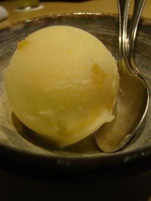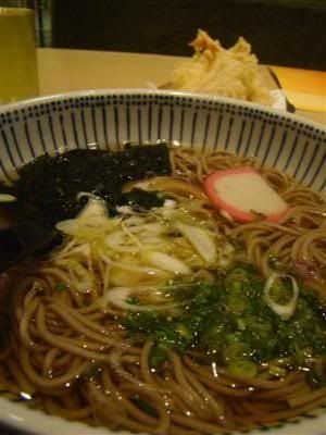 I had a tempura soba (because I don’t eat anything Japanese besides kaiten sushi, tempura, soba, udon and kare) and yuzu sherbet.