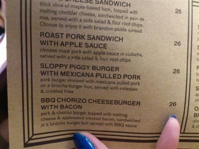 After browsing for a bit, I decided on the Sloppy Piggy Burger with Mexicana Pulled Pork. Very unlike me but I was thinking that a pork patty would be interesting. Besides, I had someone to help me finish up if I couldn't. He oddly ordered a rice dish of Nyonya Asam Pork served with salted vegetable and duck soup.