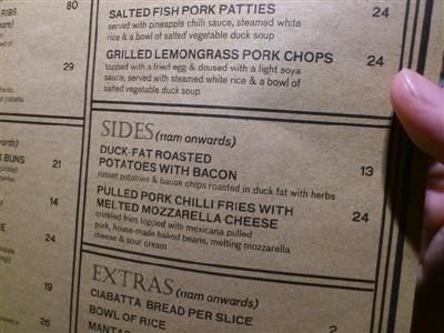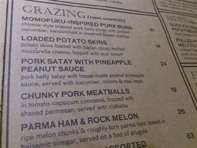 A few interesting items we saw on the menu were stuff like... Duck-fat roasted potatoes with bacon. Definitely heart attack and bypass worthy.