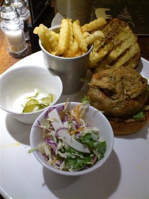 My pork burger came in a portion too big for a regular female. A side of coleslaw, fries and some pickles for you to put on top of the patty or leave it aside. The bun tasted a little too toasted to the point of charred. You can see the char marks for yourself. The pulled pork was just a small portion on the patty so it really didn't make a big difference to the burger as a whole.