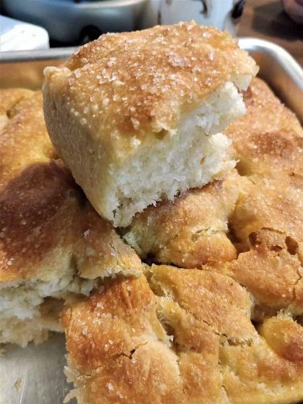 For the rest of the focaccia, I plan to toast them in the air fryer as tasty croutons or cut them into bread sticks to dip into some leftover tomato sauce. It soaks up liquid really nicely but holds it pretty well.